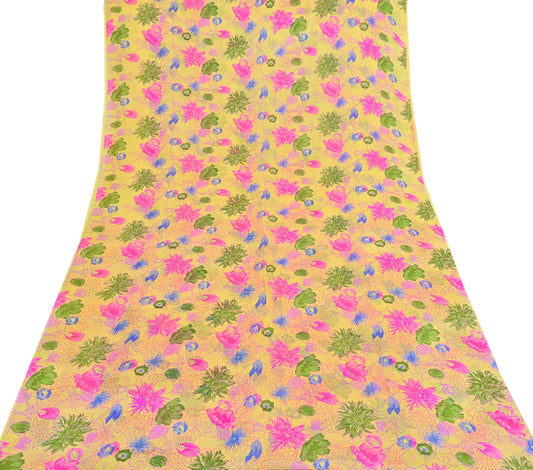 Indian Vintage Sari Yellow Pure Silk Printed Saree 6yd Sewing Craft Fabric DressMaking Soft