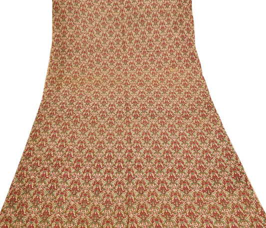 Indian Vintage Sari Beige & Red 100% Pure Silk Block Printed Sarees 6yd Craft Fabric Sewing Soft Dress Making Quilting Crafting Upcycle