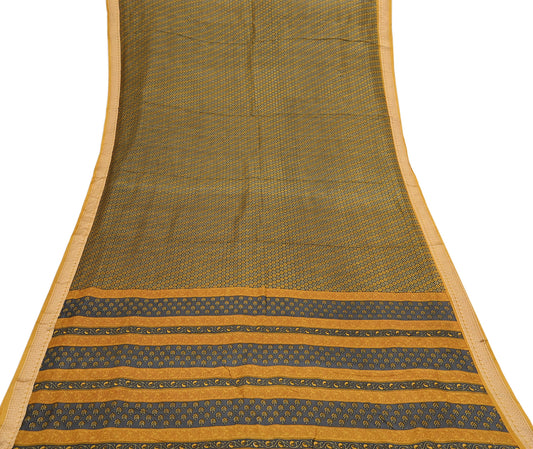 Vintage Sari Gray & Mustard Pure Silk Hand Woven Printed Saree Fabric 5yard Sewing Dress Designing for Crafting Quilting Upcycle Soft Border