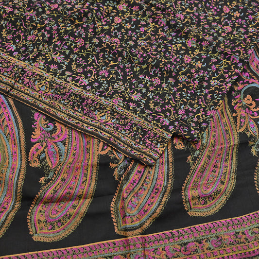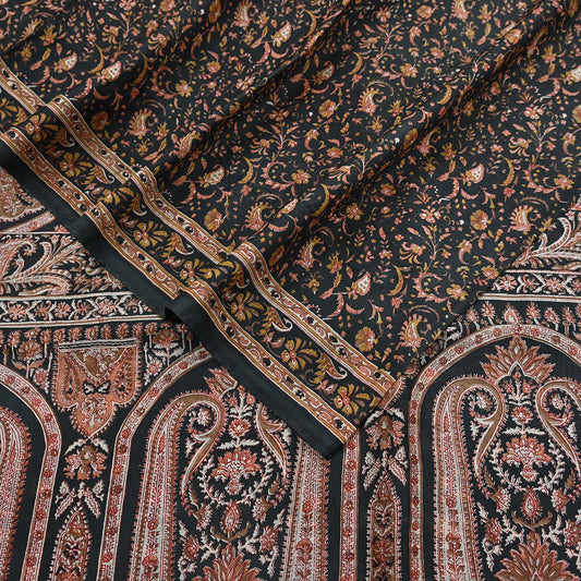 Vintage Sari Black Pure Silk Printed Saree Craft Fabric 6yard Sewing Floral Soft Dress Designing for Crafting Upcycle Quilting