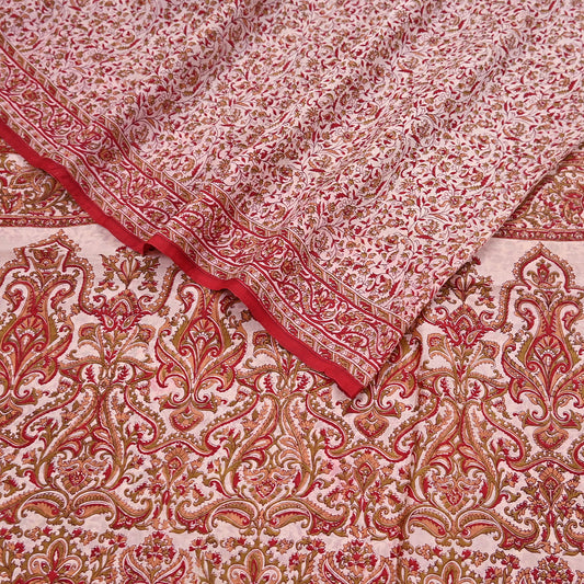 Indian Vintage Ivory & Red Saree Pure Silk Printed Sari 6yd Sewing Craft Fabric DressMaking Soft Wrap Crafting Quilting Used Paisley