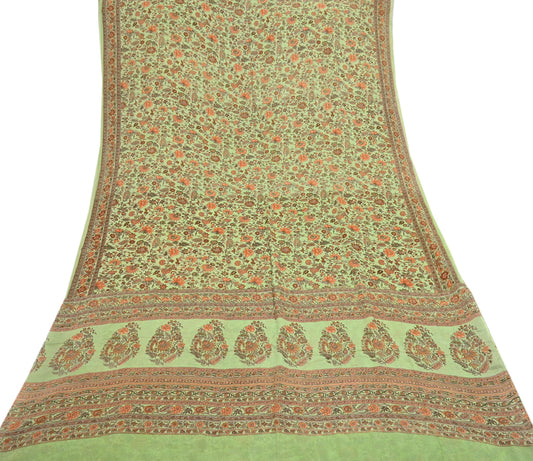 Indian Vintage Sari Green Pure Silk Printed Sarees Craft Fabric 6yd Sewing Dress Making Soft Floral Crafting Quilting Upcycle