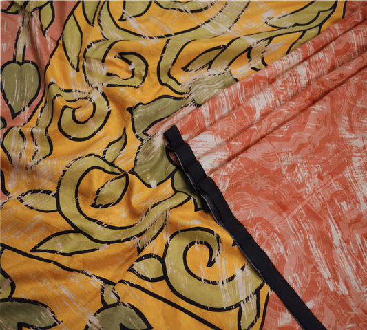 Indian Vintage Sari Saffron 100% Pure Silk Printed Saree 6yd Sewing Craft Fabric DressMaking Soft Wrap Floral Abstract