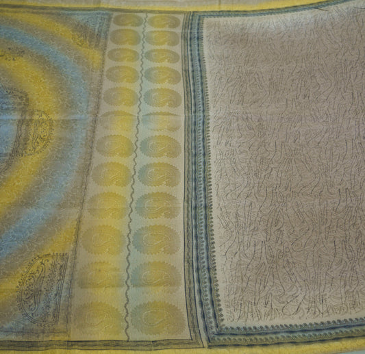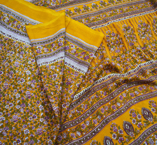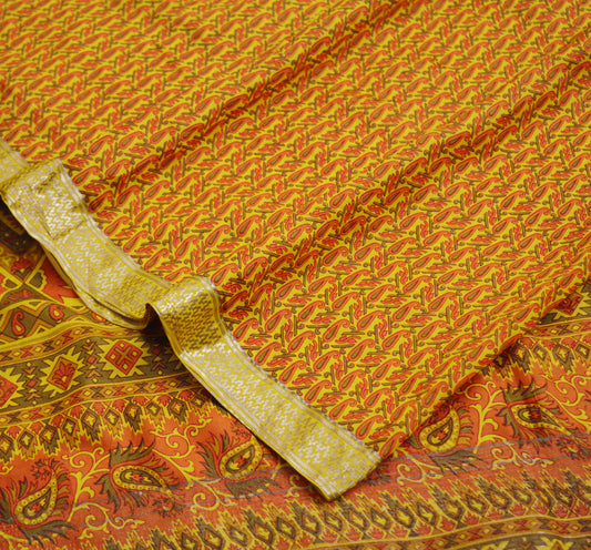 Indian Vintage Sari Yellow Pure Silk Printed Saree 6yd Sewing Craft Fabric DressMaking Soft