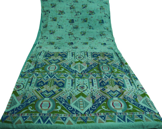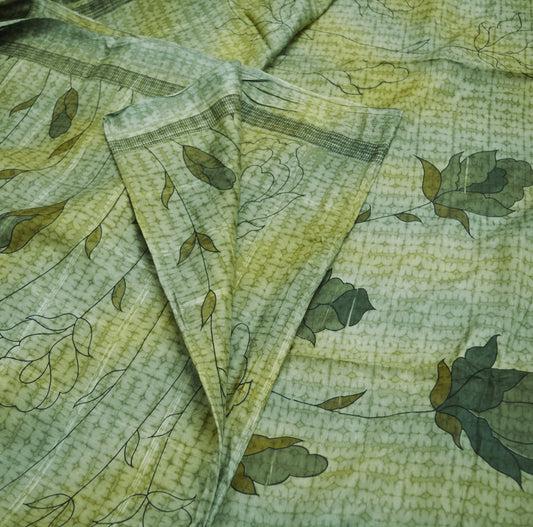 Indian Vintage Sari Green Pure Silk Printed Saree Fabric 6yd Sewing Craft DressMaking Soft Floral Design