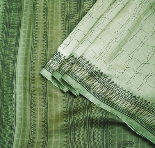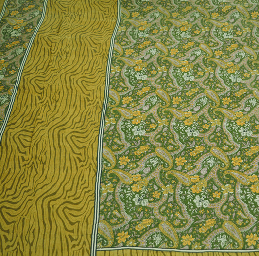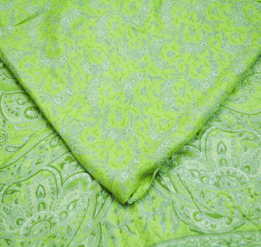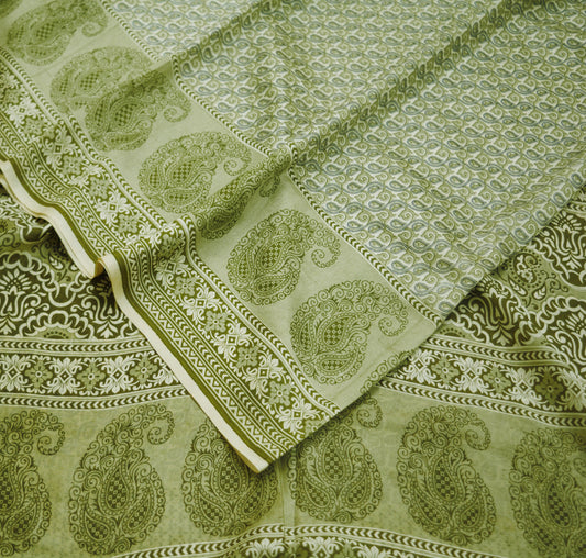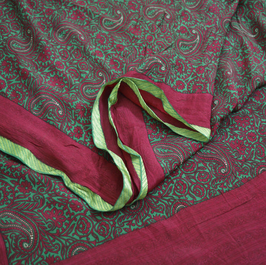 Indian Vintage Sari Green Pure Silk Printed Saree Fabric 5yd Sewing Craft DressMaking Soft Paisley Design