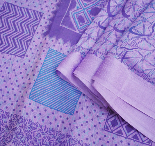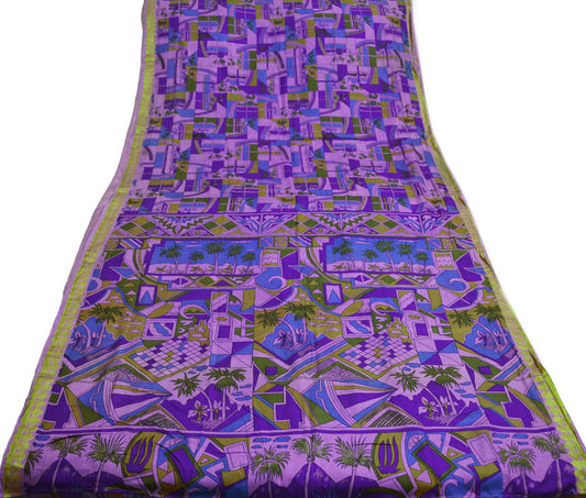 Indian Vintage Sari Purple Pure Silk Printed Saree Fabric 5yd Sewing Craft Fabric DressMaking Soft