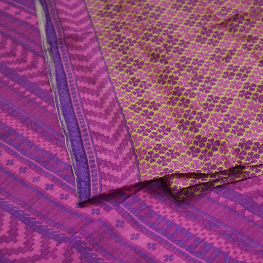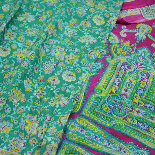 Indian Vintage Sari Pink & Green Pure Silk Printed Saree 5yd Sewing Craft Fabric DressMaking Soft Floral Ethnic