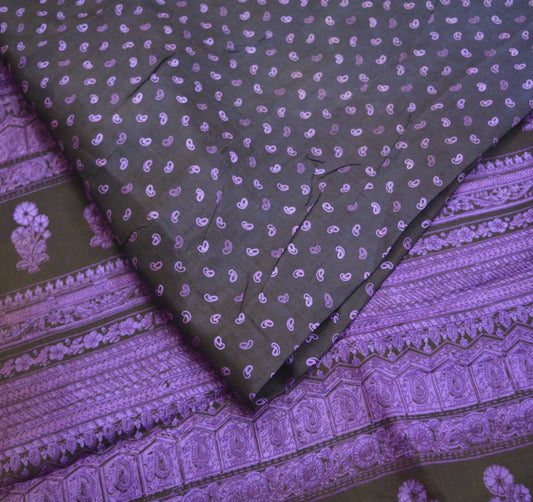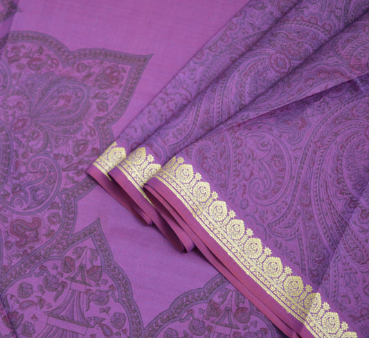 Indian Vintage Sari Purple 100% Pure Silk Printed Saree Fabric 5yd Sewing Craft Fabric DressMaking Soft Floral Paisley
