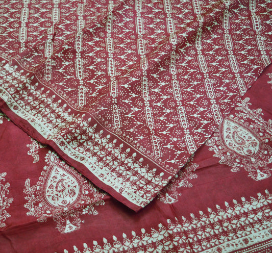 Indian Vintage Sari Maroon 100% Pure Silk Printed Saree Fabric 5yard Sewing Craft DressMaking Soft Paisley