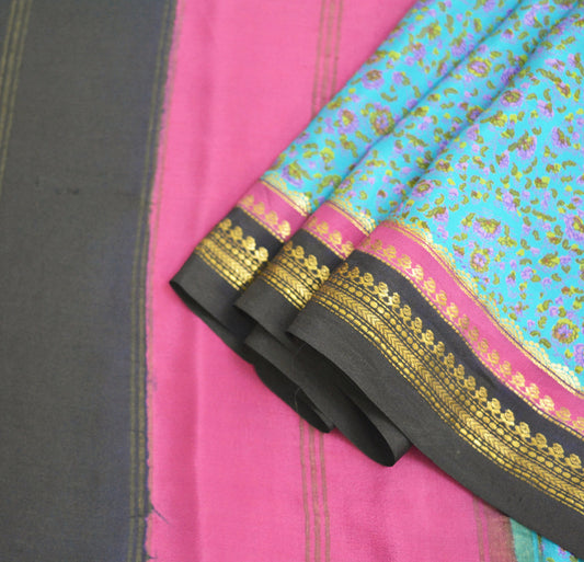 Indian Vintage Sari Pink & Blue 100% Pure Silk Printed Saree Fabric 5yard Sewing Craft DressMaking Soft Zari