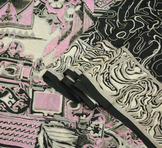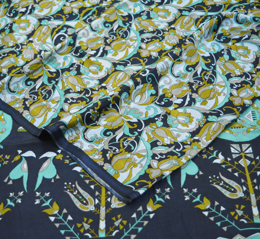 Indian Vintage Sari Black 100% Pure Silk Printed Saree Fabric 6yard Sewing Craft DressMaking Soft Abstract