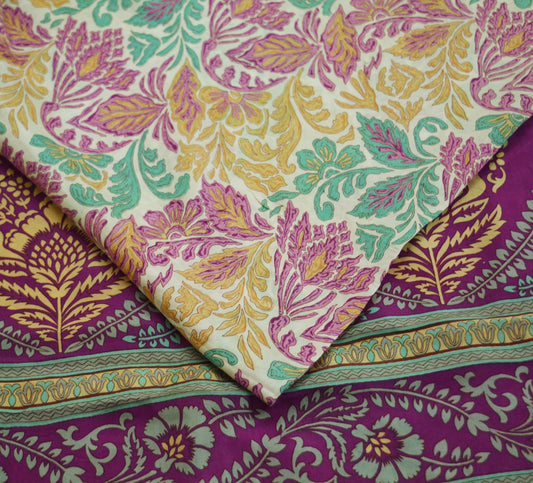 Indian Vintage Sari Purple & Ivory Pure Silk Printed Saree Fabric 6yd Sewing Craft Fabric DressMaking Floral