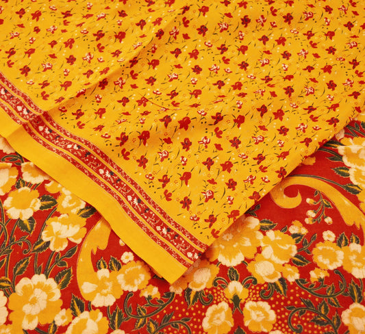 Indian Vintage Sari Saffron & Red 100% Pure Silk Printed Sarees 6yd Sewing Craft Fabric DressMaking Soft Floral Quilting Crafting Upcycle