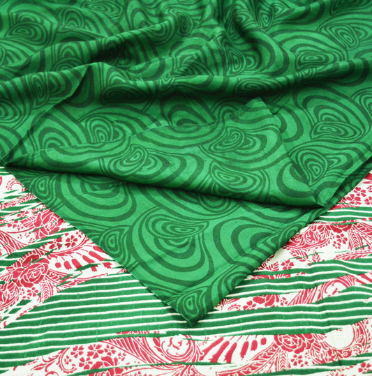 Indian Vintage Sari Red & Green Pure Silk Printed Saree Fabric 5yard Sewing Craft Fabric DressMaking Soft Wrap
