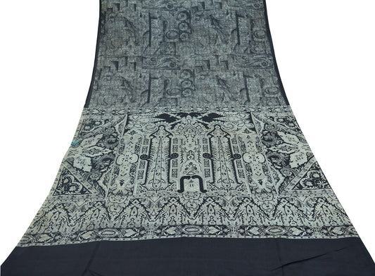 Indian Vintage Sari Gray Pure Silk Printed Saree Fabric 6yard Sewing Craft DressMaking Soft Abstract Decor