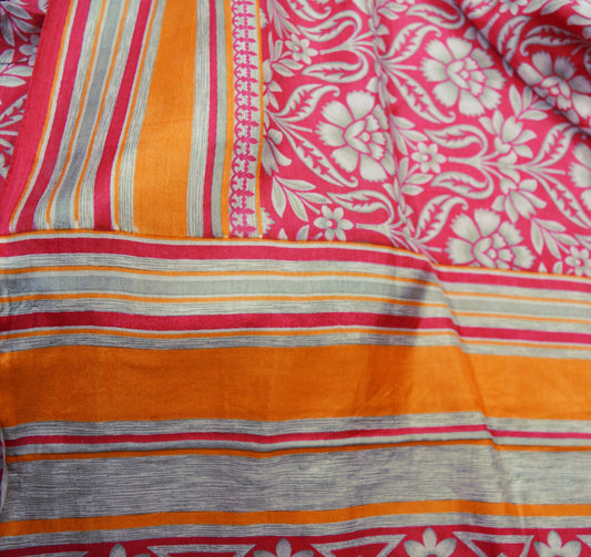 Indian Vintage Sari Orange & Peach Pure Silk Printed Saree 5yd Sewing Craft Fabric DressMaking Floral Dressdesiging