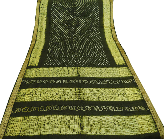 Indian Vintage Sari Pure Silk Leheria & Bandhani Printed Saree Fabric 5yard Sewing Craft DressMaking
