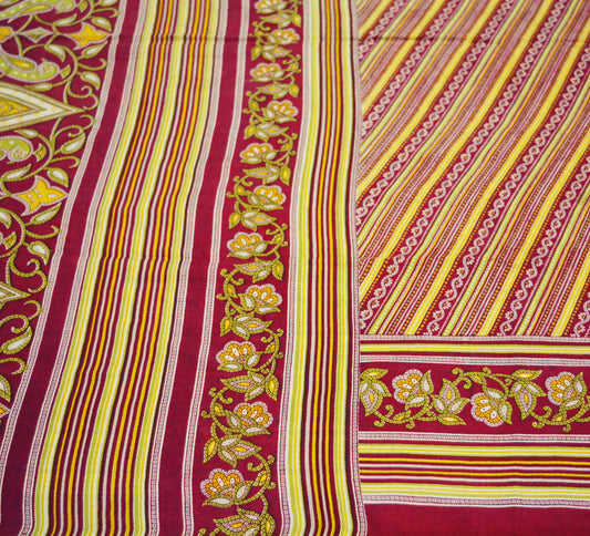 Indian Vintage Sari Maroon & Blue 100% Pure Silk Printed Sarees Craft Fabric 5yd Sewing DressMaking Crafting Stripes Quilting Upcycle Used