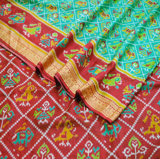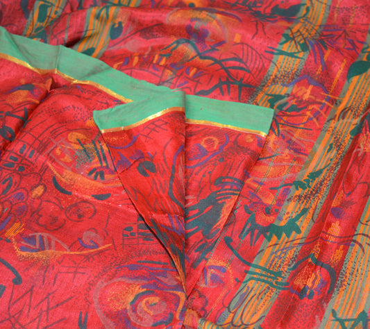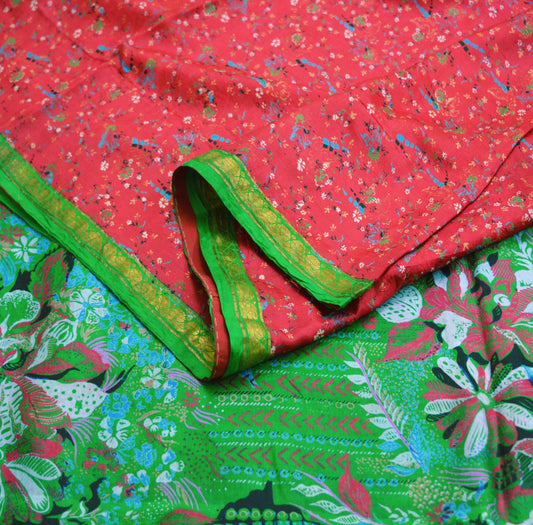 Indian Vintage Sari Red & Green Pure Silk Printed Saree Fabric 5yard Sewing Craft Fabric DressMaking Soft Wrap