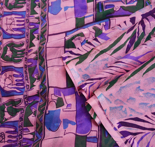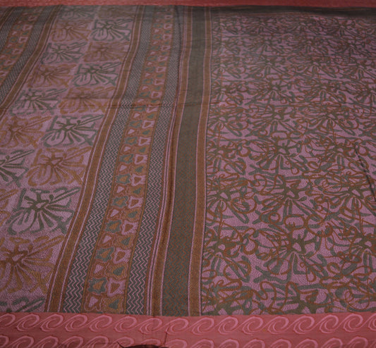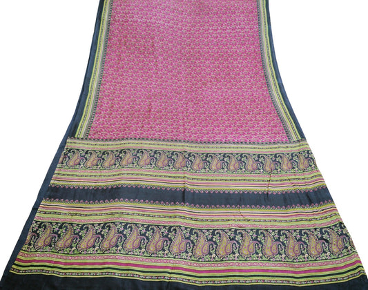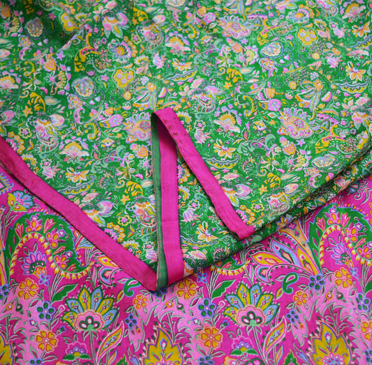 Indian Vintage Sari Pink & Green Pure Silk Printed Saree Fabric 5yd Sewing Craft DressMaking Soft Floral Ethnic