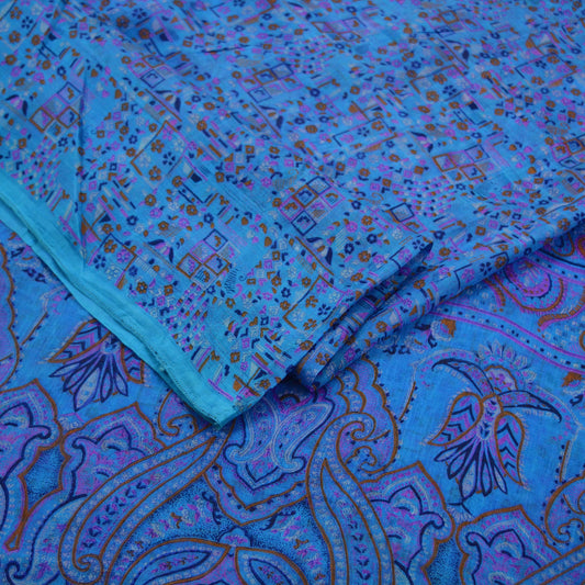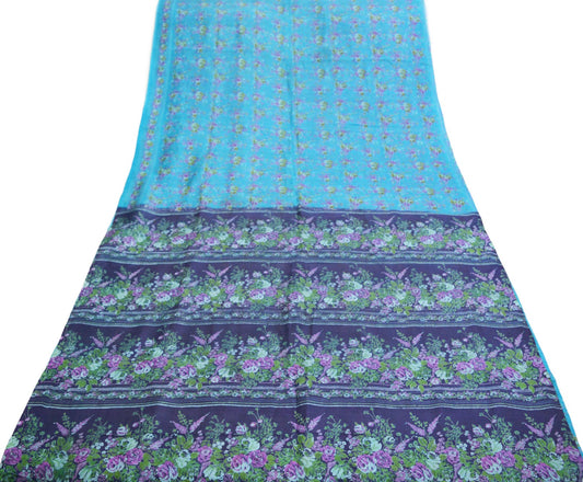 Indian Vintage Sari Blue Pure Silk Printed Saree Fabric 5yard Sewing Craft Fabric DressMaking Wrap Floral