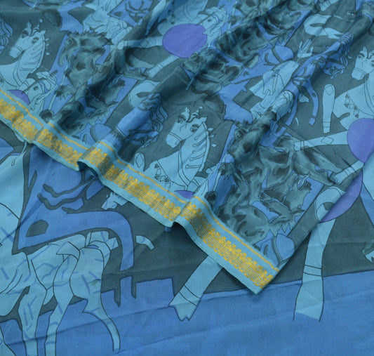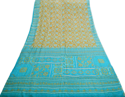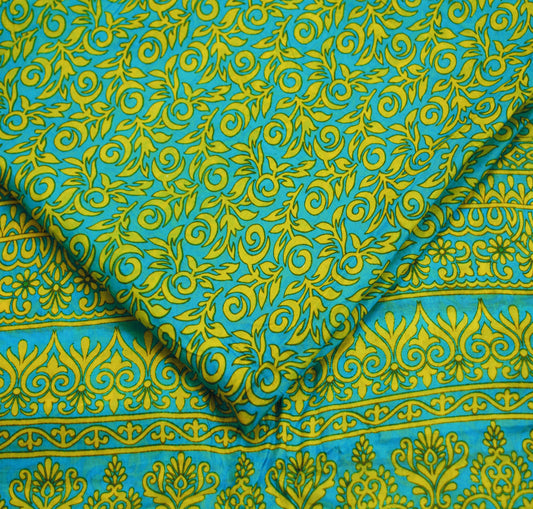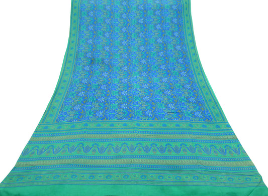 Indian Vintage Sari Green & Blue 100% Pure Silk Printed Sarees 5yd Sewing Craft Fabric Dress Making Soft Wrap Dress Making Quilting Crafting