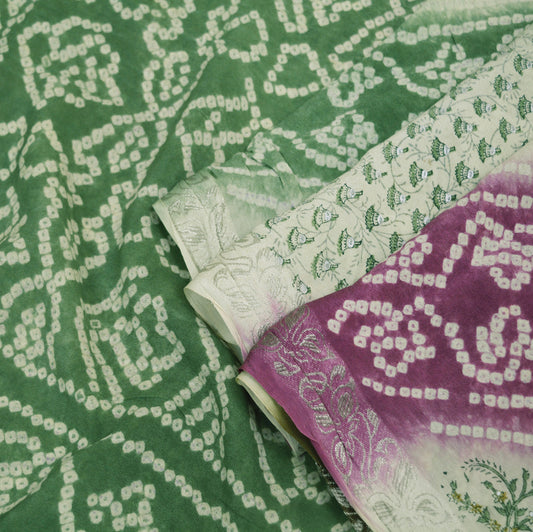 Indian Vintage Sari Green & Ivory Pure Silk Bandhani Printed Sarees Fabric 5yd Floral Sewing Traditional Culture Sari Ethnic Fabric