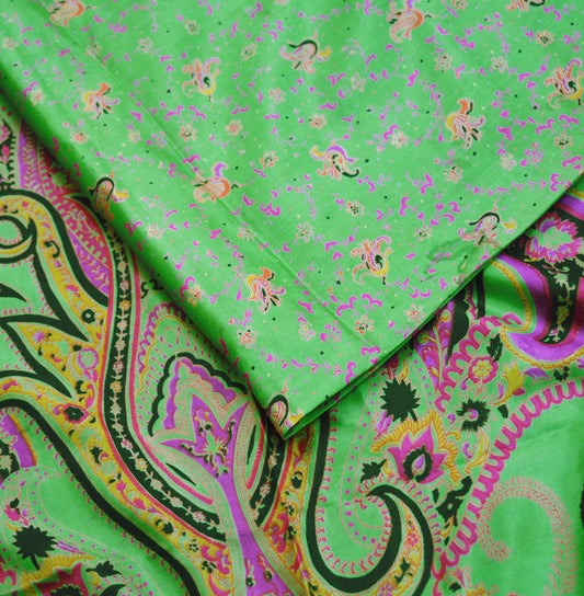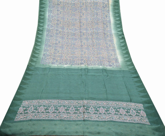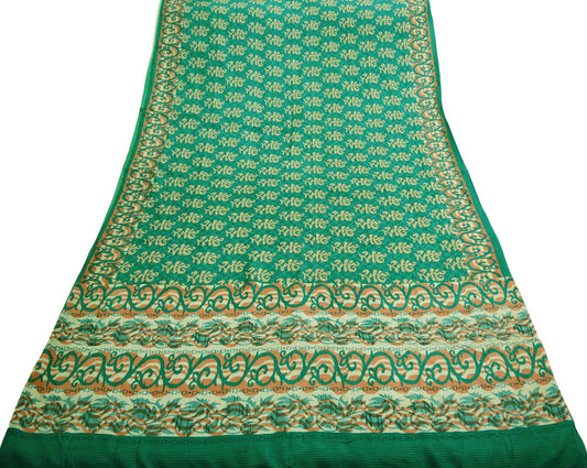 Indian Vintage Sari Green Pure Silk Printed Saree Fabric 6yd Sewing Craft DressMaking Soft Floral Design