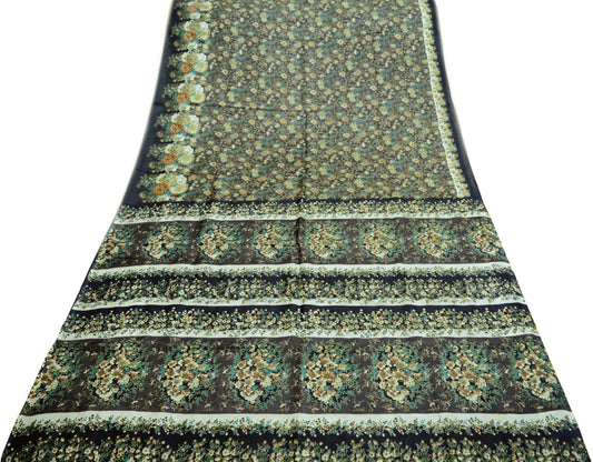 Vintage Sari Black Pure Silk Printed Sarees Fabric 6yard Sewing Soft Dress Designing for Crafting ,Decor Floral