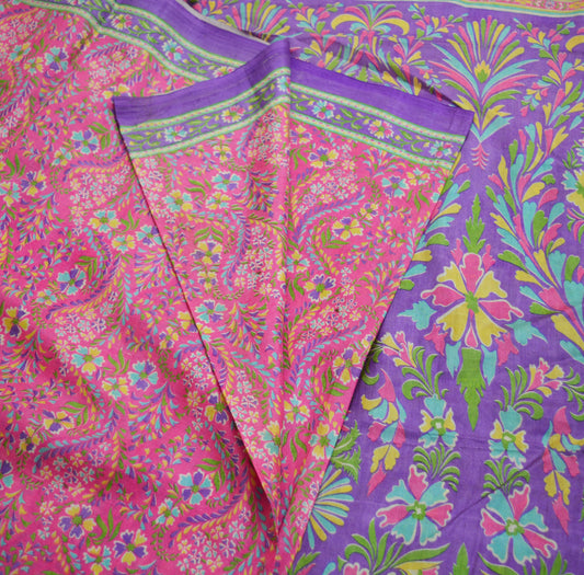 Indian Vintage Sari Purple & Pink 100% Pure Silk Printed Saree Fabric 6yard Sewing Craft DressMaking Soft Floral