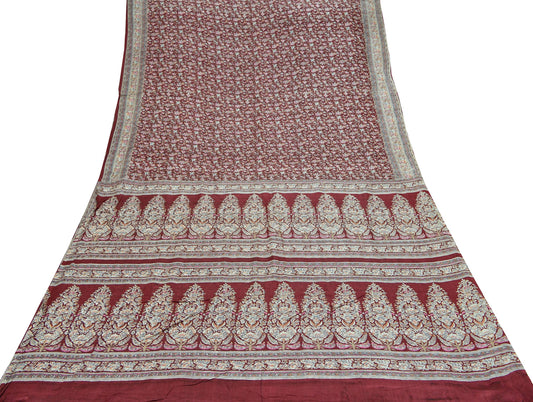 Indian Vintage Sari Maroon 100% Pure Silk Printed Sarees 5yd Craft Fabric Sewing Soft Dress Making Floral Quilting Crafting Upcycle Used