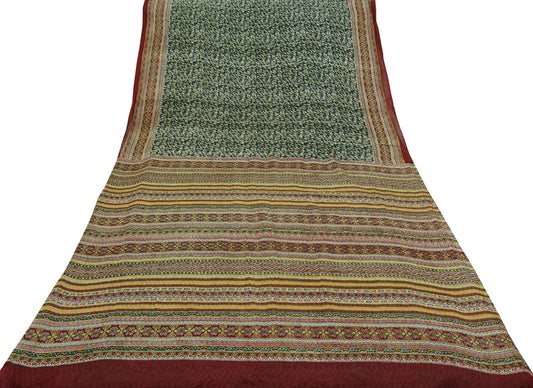Vintage Sari Green Pure Silk Printed Sarees Fabric 5yard Sewing Soft Dress Designing for Crafting ,Decor Floral