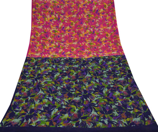 Indian Vintage Sari Pink & Blue 100% Pure Silk Printed Sarees Craft Fabric 5yd Sewing Soft Abstract Dress Making Quilting Crafting Upcycle