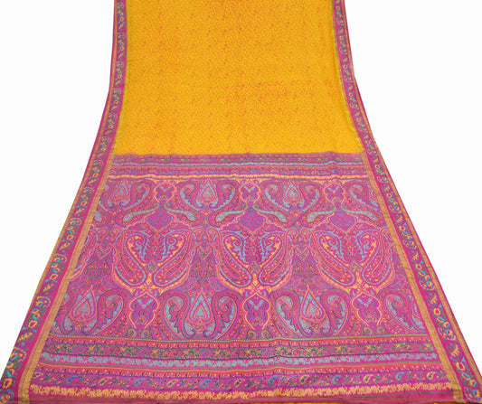 Indian Vintage Sari Pink & Yellow Pure Silk Printed Sarees Craft Fabric 5yd Sewing Dress Making Soft Quilting Crafting Upcycle