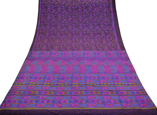 Indian Vintage Sari Purple & Blue Pure Silk Printed Saree Fabric 6yard Sewing Craft Fabric DressMaking Soft Wrap Boho