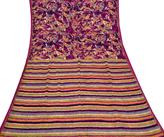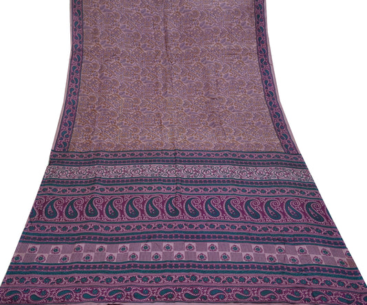 Indian Vintage Sari Purple Pure Silk Printed Sarees 6yd Sewing Craft Fabric Dress Making Soft Wrap Abstract Quilting Crafting Upcycle Used