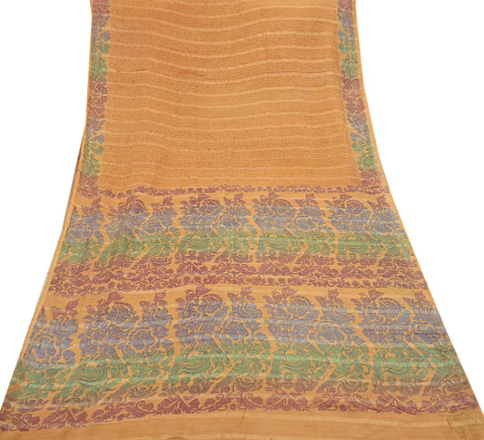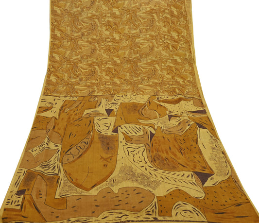 Indian Vintage Sari Saffron 100% Pure Silk Printed Saree 6yd Sewing Craft Fabric Dress Making Soft Wrap Floral Abstract Quilting Crafting