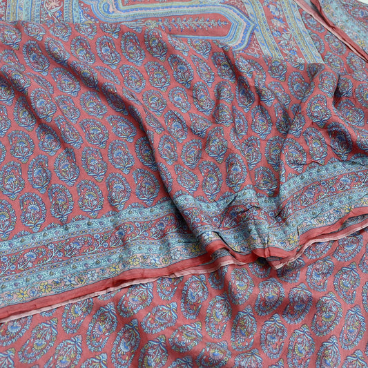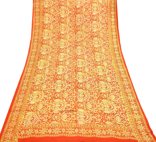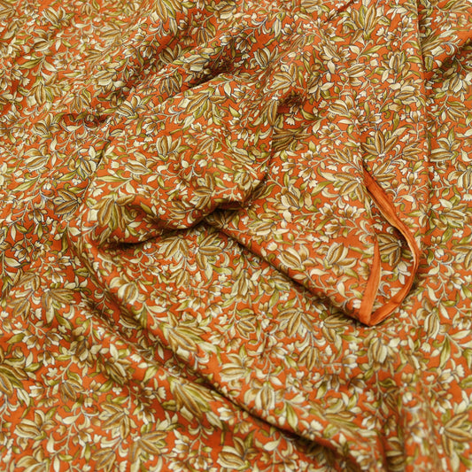 Indian Vintage Sari Orange 100% Pure Silk Printed Saree Craft Fabric 5yd Sewing Dress Making Soft Wrap Paisley Quilting Crafting Upcycle