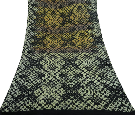 Indian Vintage Sari Black 100% Pure Silk Printed Saree Fabric 5yd Sewing Craft Fabric Dress Making Soft Floral Abstract Quilting Crafting