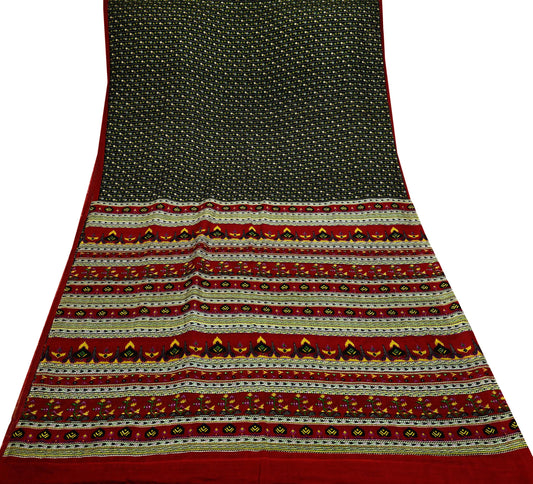 Indian Vintage Sari Black & Red Pure Silk Printed Sarees 5yd Sewing Craft Fabric Dress Making Soft Quilting Crafting Upcycle Used Abstract