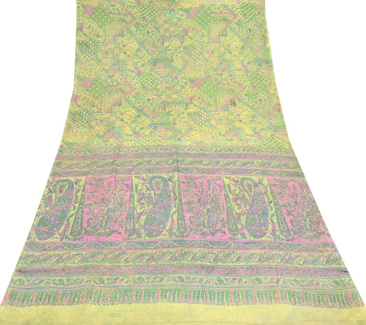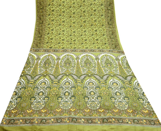 Indian Vintage Sari Green Pure Silk Printed Sarees Craft Fabric 5yd Sewing Dress Making Floral Crafting quilting