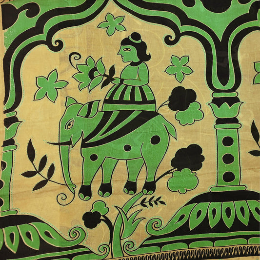 Indian Vintage Sari Beige & green Pure Silk Warli Printed Saree Craft Fabric 5Yd Dress making Sewing Dress making For Crafting Quilting