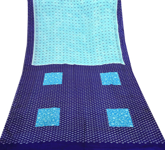 Indian Vintage Sari Blue 100% Pure Silk Printed Sarees 5yd Sewing Craft Fabric Dress Making Floral Wrap used Quilting Crafting Upcycle