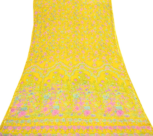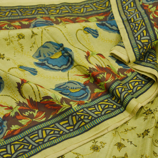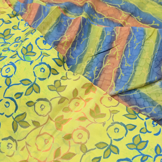 Indian Vintage Sari Yellow 100% Pure Silk Printed Sarees Craft Fabric 5yd Sewing DressMaking Soft Abstract Dress making Quilting Crafting
