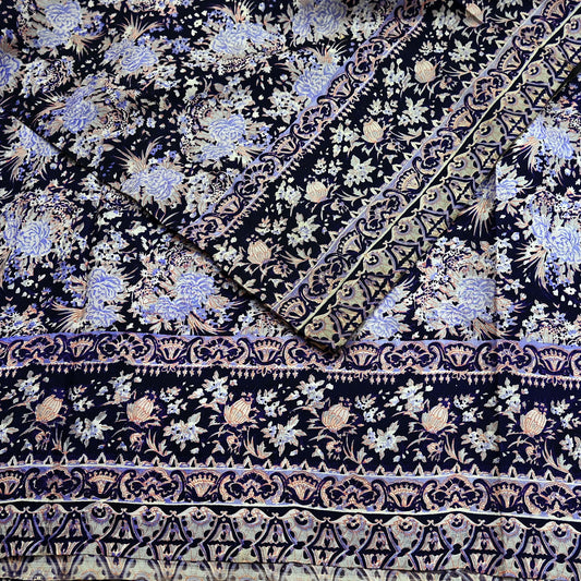 Indian Vintage Sari Blue Pure Silk Printed Sarees 5yd Sewing Craft Fabric Soft Dress Making Wrap Paisley Upcycle Quilting Crafting