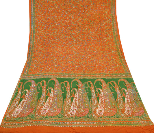 Indian Vintage Sari Orange 100% Pure Silk Printed Saree Craft Fabric 6yd Sewing Dress Making Soft Wrap Paisley Quilting Crafting Upcycle