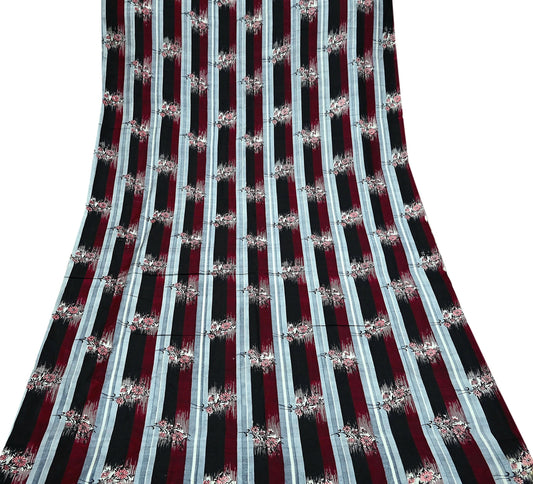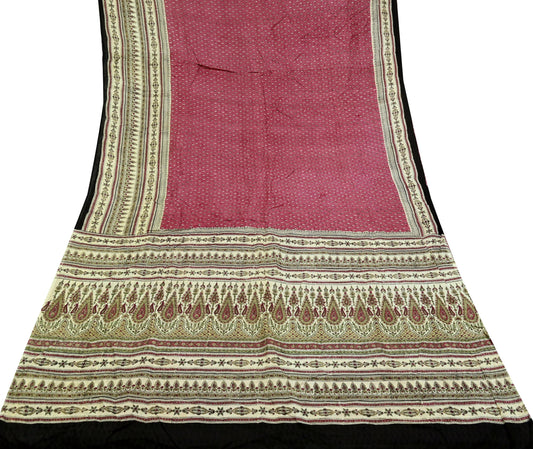 Indian Vintage Sari Black & Maroon 100% Pure Silk Printed Saree 5yd Sewing Craft Fabric DressMaking Soft Quilting Crafting Upcycle Used