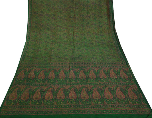 Indian Vintage Sari Green Pure Silk Printed Sarees 5yd Sewing Craft Fabric Dress Making Soft Paisley Wrap Upcycle Used Quilting Crafting