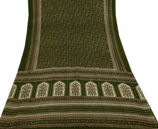 Indian Vintage Sari Green Pure Silk Printed Saree 5yd Sewing Craft Fabric DressMaking Soft Crafting Quilting Dress Designing Used